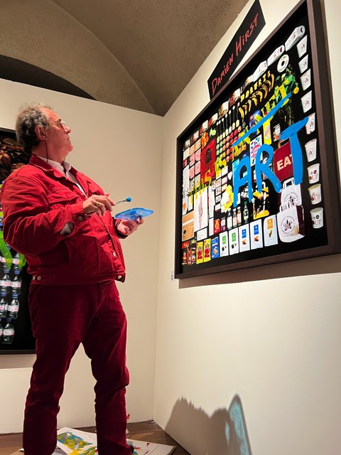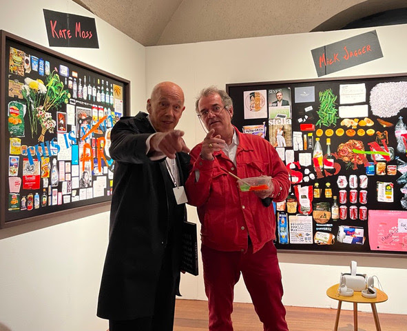 Pascal Rostain en performance sur “Damien Hirst, 2013”Philippe Garner et Pascal Rostain devant “Kate Moss, 2012” et “Mick Jagger, 2013”Stand de Rhapsody Curated à Photo London 2022